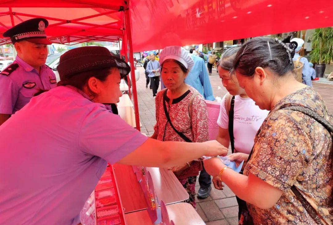 在縣新農(nóng)貿(mào)市場(chǎng),各單位各司其職,架起雨棚、布置宣傳咨詢臺(tái)、懸掛禁毒橫幅、擺好宣傳物品。隨后,各單位工作人員用通俗易懂的語(yǔ)言,結(jié)合典型案例,與群眾面對(duì)面溝通交流,普及禁毒法律法規(guī)及毒品犯罪量刑標(biāo)準(zhǔn),剖析涉毒犯罪法律后果,展示傳統(tǒng)毒品與新型毒品的圖片。同時(shí),工作人員向群眾發(fā)放印有禁毒標(biāo)語(yǔ)的水杯、環(huán)保袋等宣傳品,讓禁毒理念融入日常生活細(xì)節(jié)。過(guò)往群眾紛紛駐足,認(rèn)真翻閱宣傳資料,主動(dòng)了解禁毒知識(shí),現(xiàn)場(chǎng)學(xué)習(xí)氛圍熱烈。