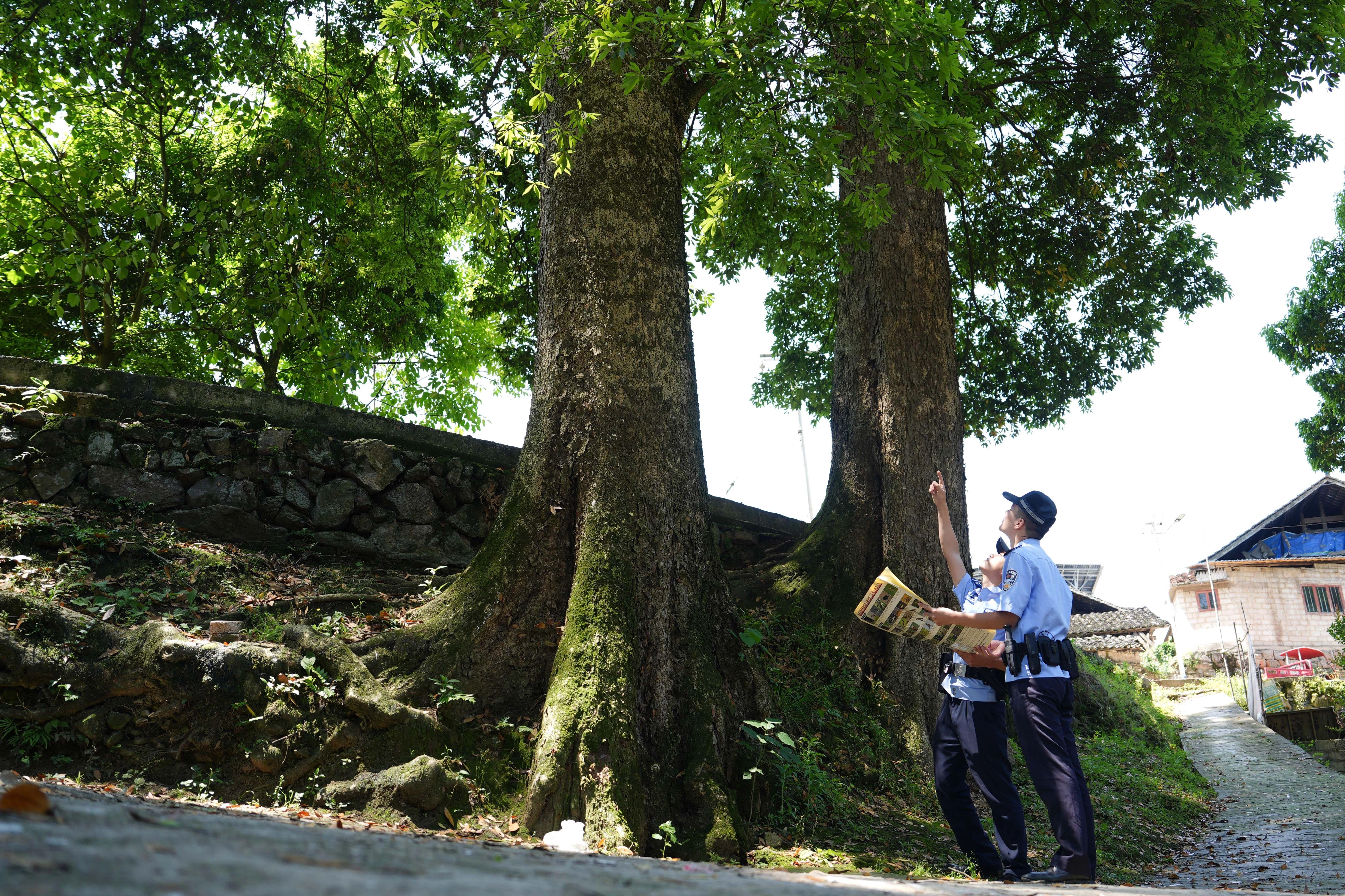 民警保護(hù)古樹名木工作圖