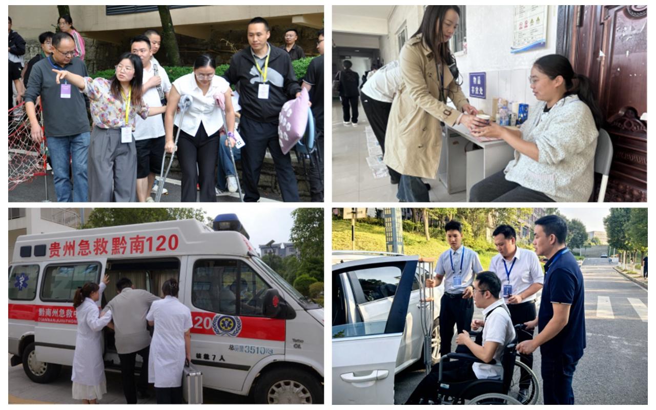 這樣的溫情時(shí)刻,在貴州各考區(qū)不斷上演。針對(duì)特殊考生的“定制化服務(wù)”,成為此次法考的鮮明亮點(diǎn):遵義考區(qū)為腿腳受傷的彭某某調(diào)整“愛(ài)心考座”,開(kāi)通無(wú)障礙通道,考務(wù)人員全程攙扶引導(dǎo),還制作考點(diǎn)全景指引圖,幫考生提前規(guī)劃路線;六盤(pán)水考區(qū)對(duì)懷孕考生格外關(guān)照,用人工安檢替代金屬探測(cè)儀減少心理負(fù)擔(dān),為6個(gè)月身孕的朱女士遞上溫?zé)犸嬘盟图雍衩拮鴫|,考試中不時(shí)輕聲詢問(wèn),動(dòng)態(tài)關(guān)注需求;安順考區(qū)接到考生黃某因車禍行動(dòng)不便的求助后,迅速為其調(diào)整靠近過(guò)道的座位,考試當(dāng)天考務(wù)人員早早等候,小心翼翼攙扶她進(jìn)出考場(chǎng);銅仁考區(qū)則在考點(diǎn)大門(mén)、路口轉(zhuǎn)角設(shè)置醒目的考場(chǎng)示意圖,安排引導(dǎo)人員指引,還準(zhǔn)備了飲用水和應(yīng)對(duì)低血糖的應(yīng)急食品,醫(yī)務(wù)人員全程駐守,為頭暈考生提供及時(shí)醫(yī)療服務(wù)。