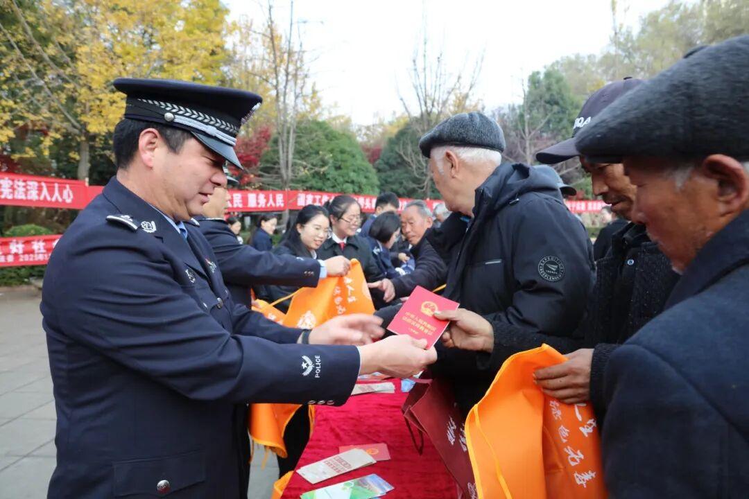清晨的六枝特區(qū)新廣場(chǎng)已是人頭攢動(dòng)。民警們?cè)缭缋饳M幅、擺開展臺(tái),將一份份圖文并茂的憲法與民法典宣傳手冊(cè)遞到過往群眾手中。印有反詐標(biāo)語的環(huán)保袋、圍裙等實(shí)用物品尤其受歡迎,民警一邊發(fā)放,一邊結(jié)合近期案例,用親切的方言講解如何識(shí)破電詐陷阱、保護(hù)自身權(quán)益。同樣熱鬧的場(chǎng)景也出現(xiàn)在盤州市勝境廣場(chǎng),不少群眾駐足在咨詢臺(tái)前,就財(cái)產(chǎn)繼承、鄰里糾紛等法律問題向民警細(xì)細(xì)詢問,民警們耐心解答,將法律條文轉(zhuǎn)化為通俗易懂的生活道理。