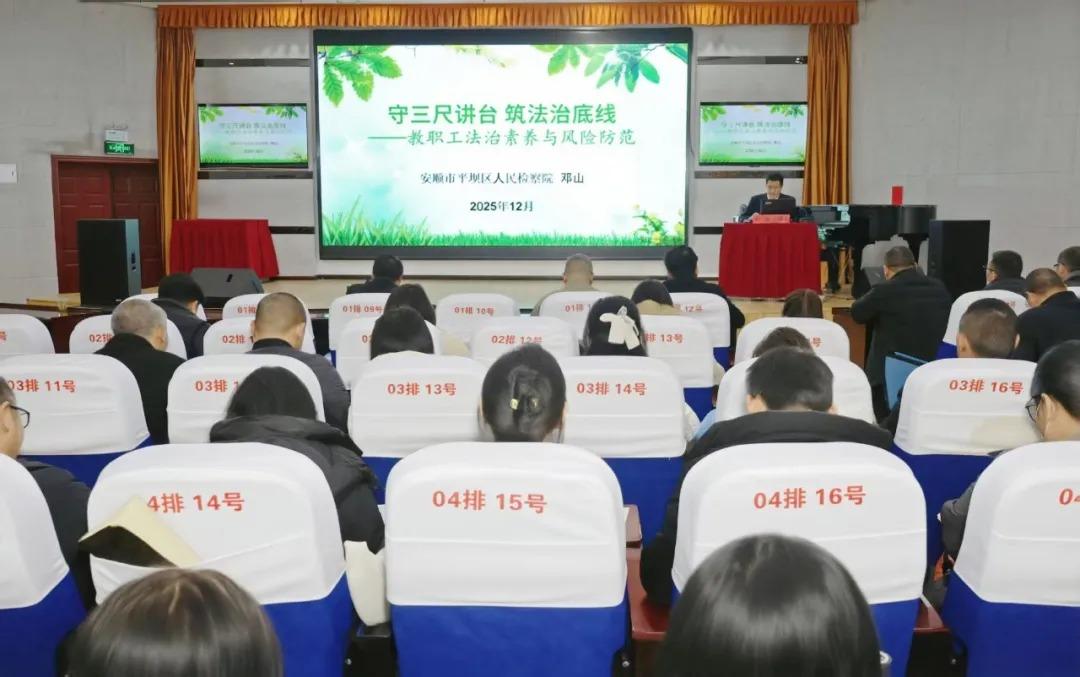近日,貴州省安順市平壩區(qū)人民檢察院黨組成員、常務(wù)副檢察長鄧山應(yīng)邀來到區(qū)青少年活動中心,為全區(qū)中小學(xué)、幼兒園校長帶來一堂題為“守三尺講臺 筑法治底線——教職工法治素養(yǎng)與風(fēng)險防范”的專題法治講座。