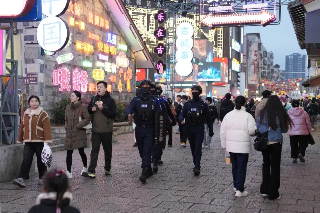 為確保元旦假期全省社會(huì)面安全穩(wěn)定,貴州省公安機(jī)關(guān)嚴(yán)格落實(shí)公安武警聯(lián)勤武裝巡邏和快速反應(yīng)機(jī)制,針對(duì)夜市、商圈等人員密集場(chǎng)所和機(jī)場(chǎng)、車站等重點(diǎn)部位開展社會(huì)治安巡邏防控,累計(jì)投入警力2.3萬(wàn)余人次,做到“見(jiàn)警察、見(jiàn)警燈、見(jiàn)警車”,有力維護(hù)了良好治安秩序。