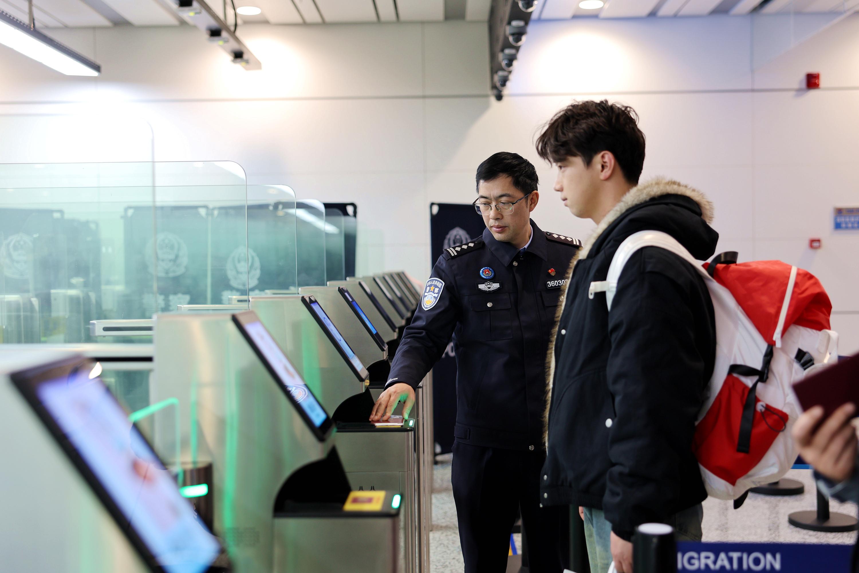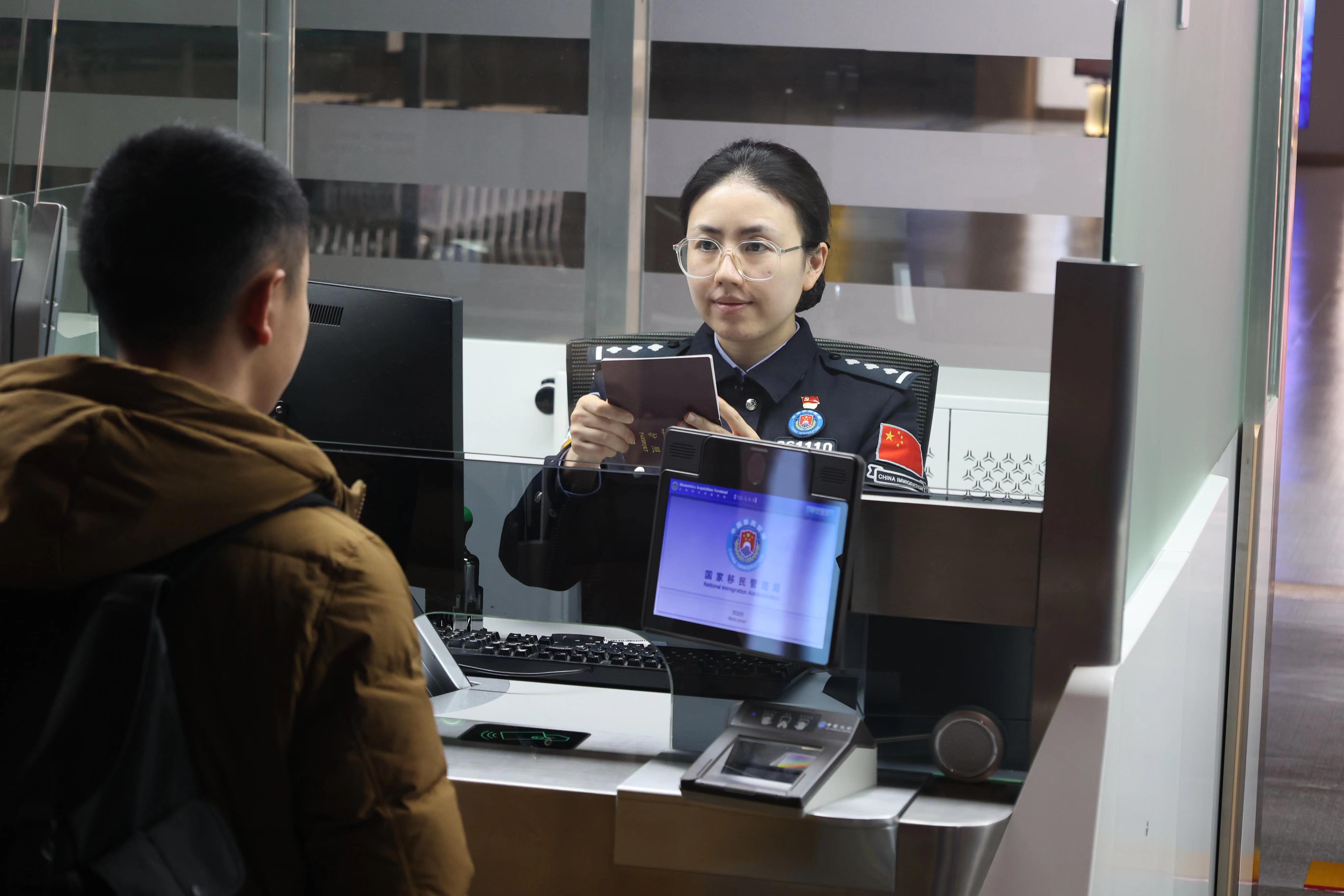 “隨著我國各項便利中外人員往來政策紅利的不斷釋放,近年來我們持續(xù)優(yōu)化邊檢服務(wù)舉措,升級通關(guān)保障設(shè)施,增開查驗通道,科學調(diào)配警力,有效應(yīng)對客流高峰,保障口岸通關(guān)安全、順暢、高效。同時,前置‘黨員先鋒崗’咨詢引導臺,設(shè)置快捷通關(guān)備案采集點,推行外國人入境卡網(wǎng)上填報等便利措施,讓國門通關(guān)更有溫度?!辟F州出入境邊防檢查總站邊防檢查處處長曠磊介紹道。