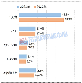 從輿情爆發(fā)時長來看,2021年與2020年的整體差別不大,從事發(fā)到輿情發(fā)酵的所用時間依舊偏短,主要爆發(fā)時長都集中在7天以內,占比累計超六成,其中1天內爆發(fā)的輿情事件比重遠高于其他時長的,達到45.5%。由此可見,在以移動社交媒體為主要傳播途徑的時代,信息傳播速度不斷提升,輿論節(jié)奏也被持續(xù)壓縮。例如在網(wǎng)民“辣筆小球”侮辱戍邊英烈一案中,其違法言論一經(jīng)發(fā)布便遭到網(wǎng)民譴責,事發(fā)后不到12小時,個人微博被禁言,當天新華社、《人民日報》等央媒對此事發(fā)表評論,次日當?shù)鼐骄蛯ο右扇瞬扇⌒淌聫娭拼胧┎⑦M行通報,事件從發(fā)酵到處置僅用一天左右的時間,進展速度很快。此外,與2020年相比,2021年中輿情發(fā)酵與事發(fā)間隔1至3年的事件占比翻番,達到7.2%,如北京“教授狀告知網(wǎng)侵權案”在獲得新進展之后再度引發(fā)關注,說明無論案件是否已經(jīng)閉環(huán),只要爭議尚存,輿情就仍有復燃的風險。