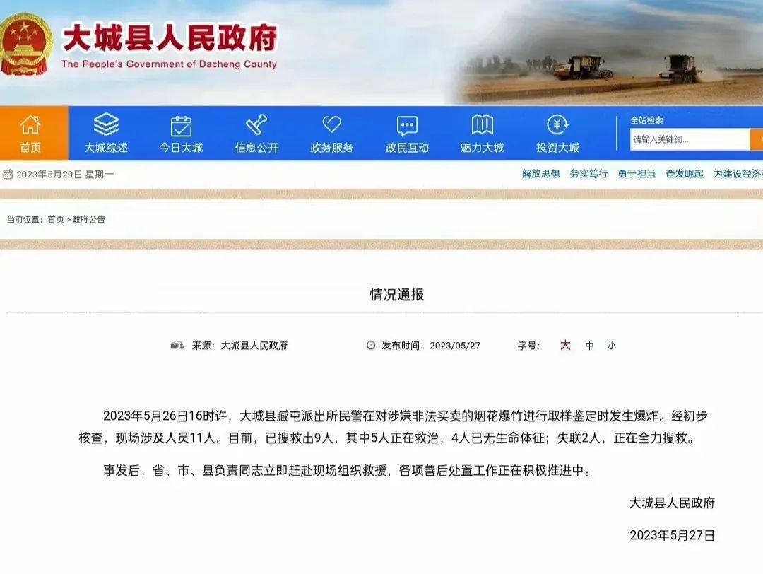 5月26日下午,網(wǎng)傳河北大城縣一派出所院內(nèi)發(fā)生爆炸,事故原因引發(fā)網(wǎng)民追問。5月27日8時許,大城縣人民政府網(wǎng)站通報(bào)稱:“5月26日16時許,大城縣臧屯派出所民警在對涉嫌非法買賣的煙花爆竹進(jìn)行取樣鑒定時發(fā)生爆炸。經(jīng)初步核查,現(xiàn)場涉及人員11人。其中,4人已無生命體征,失聯(lián)2人。”然而,通報(bào)中提及的爆炸原因卻成為后續(xù)輿情發(fā)酵點(diǎn),網(wǎng)民不解派出所民警為何要去鑒定煙花爆竹,部分網(wǎng)民借機(jī)對死去民警進(jìn)行冷嘲熱諷,發(fā)布揣測性信息,并獲得其他網(wǎng)民點(diǎn)贊。面對這種局面,當(dāng)?shù)卣⑽催M(jìn)行回應(yīng)和解釋,認(rèn)證為“河北省公安廳政治部副主任”的賬號“@永華的小菜園”批評當(dāng)?shù)氐男畔l(fā)布“語焉不詳導(dǎo)致誤讀”。