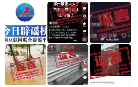 一是編造汛情災(zāi)情。造謠者通過視頻嫁接、圖片拼湊等手段,捏造暴雨、內(nèi)澇、滑坡、泥石流等災(zāi)情信息,并將位置定位在災(zāi)害發(fā)生地,具有迷惑性,容易讓人信以為真。如短視頻賬號“熟悉的背影”故意將網(wǎng)上下載的其他城市的暴雨視頻張冠李戴為鄭州,以目擊者口吻編造“鄭州暴雨下得太可怕,白天變成了晚上”等不實(shí)信息,誤導(dǎo)眾多網(wǎng)民留言表達(dá)擔(dān)憂;網(wǎng)傳“重慶奉節(jié)口前山體滑坡”,實(shí)為湖北秭歸一山體發(fā)生滑坡瞬間;而短視頻中熱傳的“百年難遇!濟(jì)南遭遇特大暴雨”視頻,經(jīng)濟(jì)南互聯(lián)網(wǎng)聯(lián)合辟謠平臺證實(shí)系謠言,視頻中的地鐵、街道等場景不在濟(jì)南。