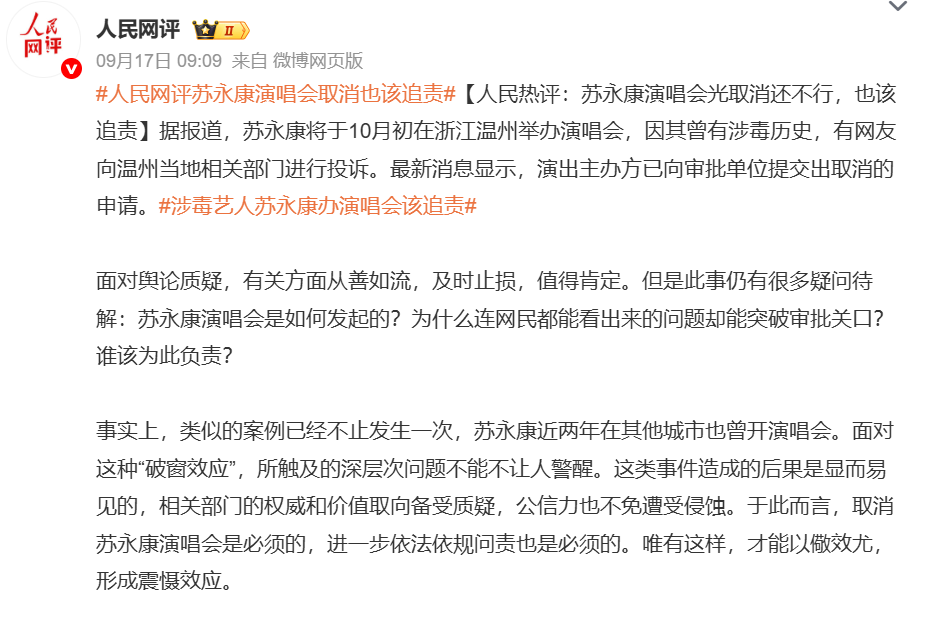 6.蘇永康演唱會(huì)主辦方申請(qǐng)取消,涉毒藝人不能復(fù)出是底線