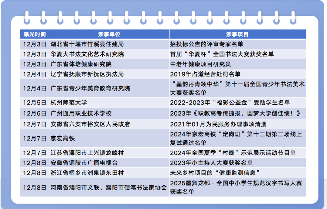 12月5日,有網(wǎng)民稱,杭州師范大學(xué)人文學(xué)院官網(wǎng)發(fā)布的《關(guān)于“多彩送教淳滋味”福彩公益金項目受助對象公示(線上課程3)》名單與百度文庫“10000中國普通人名大全”中的姓名及排序完全吻合,輿論對公益項目真實(shí)性和資金使用情況產(chǎn)生質(zhì)疑。12月6日上午,杭州師范大學(xué)發(fā)布初步情況說明稱,學(xué)校對此高度重視,已組建調(diào)查小組,將本著嚴(yán)肅負(fù)責(zé)的態(tài)度,詳細(xì)核查有關(guān)情況,嚴(yán)格依規(guī)處置。當(dāng)日下午,該校發(fā)出詳細(xì)情況通報,承認(rèn)“工作人員弄虛作假”,并定性為“相關(guān)工作人員作風(fēng)不嚴(yán)不實(shí),相關(guān)部門和學(xué)院監(jiān)管不力”,同時公布受助學(xué)生及項目資金使用情況?!?杭州師范大學(xué)通報調(diào)查結(jié)果#” 話題登上熱搜第一。然而該通報發(fā)出后,部分網(wǎng)民對于部分采購項目金額仍存疑議。