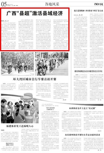 《光明日?qǐng)?bào)》評(píng)論稱,由賽事熱血匯聚而成的“流量”,正不斷為縣域經(jīng)濟(jì)發(fā)展賦能。不僅將賽事流量轉(zhuǎn)化為經(jīng)濟(jì)增量,更是成為展示廣西縣域魅力、傳播民族文化的重要平臺(tái)。《中國(guó)體育報(bào)》評(píng)論稱,廣西“縣超”正以足球?yàn)榧~帶,將賽事熱度源源不斷地轉(zhuǎn)化為鄉(xiāng)村振興的動(dòng)力、文旅融合的活力與經(jīng)濟(jì)發(fā)展的增量,為體育強(qiáng)區(qū)、壯美廣西建設(shè)注入澎湃動(dòng)能,八桂綠茵的精彩與商機(jī),仍在持續(xù)書(shū)寫。
