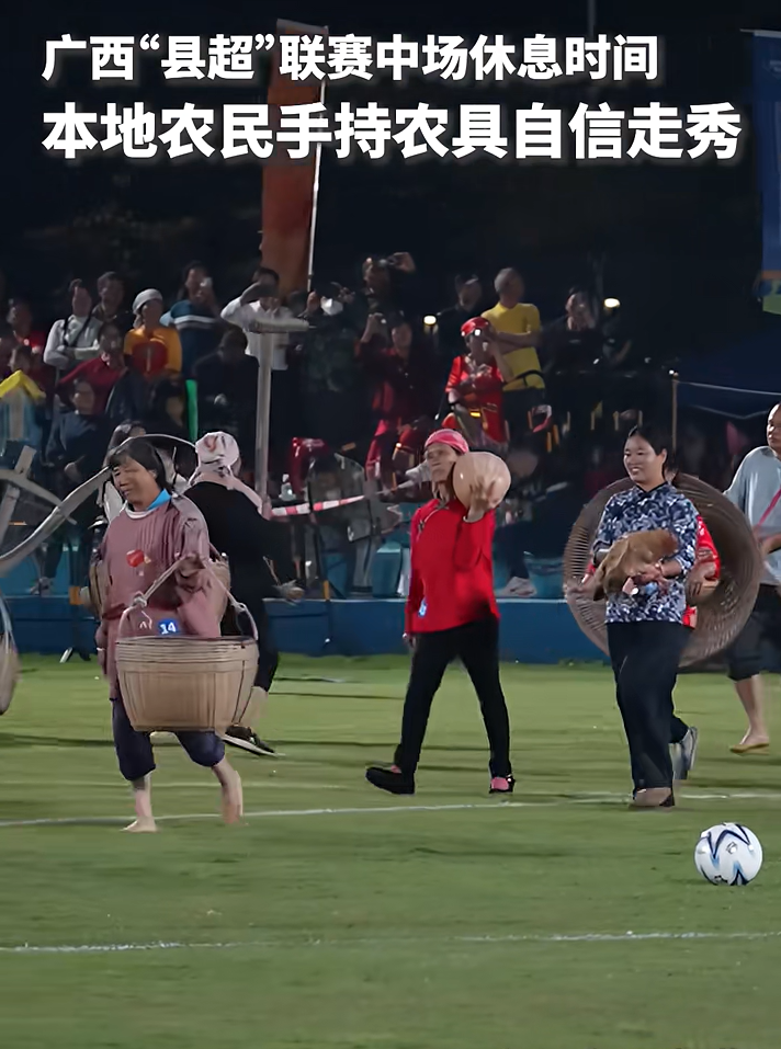 2026年3月18日,據(jù)《廣西日?qǐng)?bào)》《農(nóng)民日?qǐng)?bào)》等媒體報(bào)道,在廣西“縣超”桂平主場(chǎng)對(duì)戰(zhàn)賀州八步區(qū)的比賽中,桂平市石龍鎮(zhèn)新村的村民們身著蓑衣斗笠、藍(lán)布衫,扛著犁耙鋤頭,拎著簸箕竹籃,踏著民樂(lè)與流行曲混搭的節(jié)拍,把“鄉(xiāng)村T臺(tái)”搬上賽場(chǎng)?!度嗣袢?qǐng)?bào)》、央視新聞等媒體予以轉(zhuǎn)載報(bào)道,相關(guān)微博話題“#被這場(chǎng)鄉(xiāng)村T臺(tái)秀刷屏了#”“#廣西農(nóng)民扛著農(nóng)具自信走秀#”等閱讀量累計(jì)超800萬(wàn)?!癅中國(guó)三農(nóng)發(fā)布”評(píng)論稱,當(dāng)鄉(xiāng)親們帶著這些浸潤(rùn)了歲月痕跡的老物件,昂首走上現(xiàn)代化的綠茵場(chǎng),他們帶來(lái)的不僅是一場(chǎng)表演,更是一次跨越時(shí)空的深情回望。這一現(xiàn)象之所以能被廣泛傳播、成為“頂流”,恰恰說(shuō)明人們對(duì)真實(shí)、質(zhì)樸、有根脈的文化打心底里需要。鄉(xiāng)親們扛著農(nóng)具走秀的這份真實(shí)和鮮活,那種不加濾鏡的笑臉,比什么精心設(shè)計(jì)都動(dòng)人。網(wǎng)民也紛紛點(diǎn)贊此次“農(nóng)民走秀”,稱“勞動(dòng)人民最美麗”“淳樸真實(shí)最打動(dòng)人心”。相關(guān)言論獲得大量點(diǎn)贊,“縣超”的傳播熱度進(jìn)一步攀升。