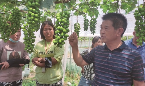 夏邑縣農(nóng)廣校聘請中國農(nóng)科院鄭州果樹研究所專家劉三軍博士到北嶺鎮(zhèn)現(xiàn)場指導葡萄生產(chǎn)管理技術(shù)。 王留標 攝