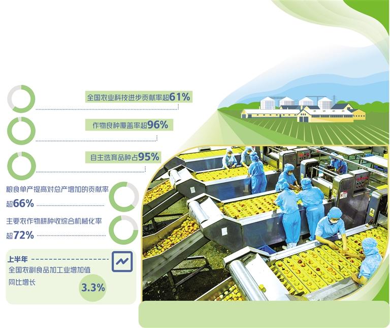 “農(nóng)業(yè)不加工,到頭一場(chǎng)空”。過去,受制于加工技術(shù),農(nóng)產(chǎn)品加工普遍同質(zhì)化,精深加工不足,加工轉(zhuǎn)化率低。中國(guó)農(nóng)科院農(nóng)產(chǎn)品加工研究所所長(zhǎng)王鳳忠說,針對(duì)加工的科技短板,全國(guó)300多家龍頭企業(yè)和科研機(jī)構(gòu)成立了國(guó)家農(nóng)產(chǎn)品加工產(chǎn)業(yè)科技創(chuàng)新聯(lián)盟。數(shù)據(jù)顯示,截至目前,我國(guó)已經(jīng)建立農(nóng)產(chǎn)品綠色加工技術(shù)體系,開發(fā)形成了4大類、22個(gè)中類、57個(gè)小類共計(jì)數(shù)萬(wàn)種食品。加工技術(shù)在全程冷鏈、精深加工、營(yíng)養(yǎng)健康等領(lǐng)域快速發(fā)展,推動(dòng)了農(nóng)產(chǎn)品加工業(yè)質(zhì)量提升。上半年,全國(guó)農(nóng)副食品加工業(yè)增加值同比增長(zhǎng)3.3%。