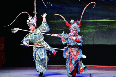 連日來(lái),河北省石家莊市井陘縣晉劇院在當(dāng)?shù)剜l(xiāng)村開(kāi)展“傳統(tǒng)戲曲唱鄉(xiāng)村”活動(dòng)。此次惠民演出將帶來(lái)《三關(guān)點(diǎn)帥》等經(jīng)典晉劇曲目50余場(chǎng)次。據(jù)悉,井陘縣近年來(lái)通過(guò)開(kāi)展國(guó)家級(jí)非物質(zhì)文化遺產(chǎn)項(xiàng)目“井陘晉劇”進(jìn)山村、進(jìn)校園、進(jìn)社區(qū)等送戲惠民活動(dòng),有力促進(jìn)了非遺文化發(fā)展。圖為7月25日,井陘縣晉劇院演員表演傳統(tǒng)曲目《三關(guān)點(diǎn)帥》。