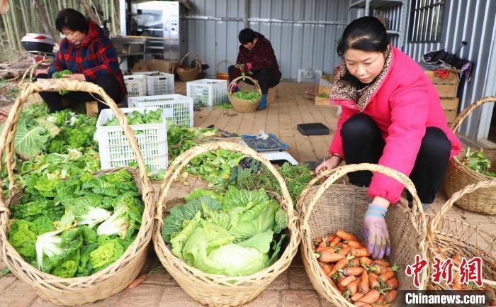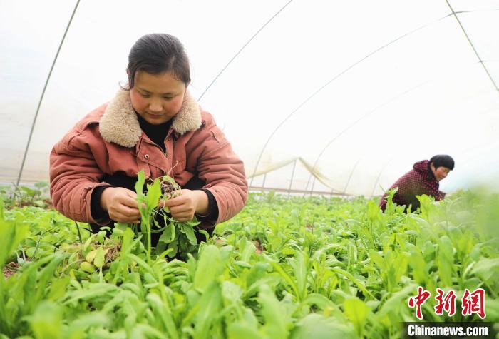 2月14日,安徽省肥西縣紫蓬山旅游開發(fā)區(qū)張老圩村風之谷家庭農(nóng)場內(nèi),農(nóng)民在給菜地澆水,采摘、分揀新鮮蔬菜供應(yīng)市場,田間地頭一派繁忙景象。