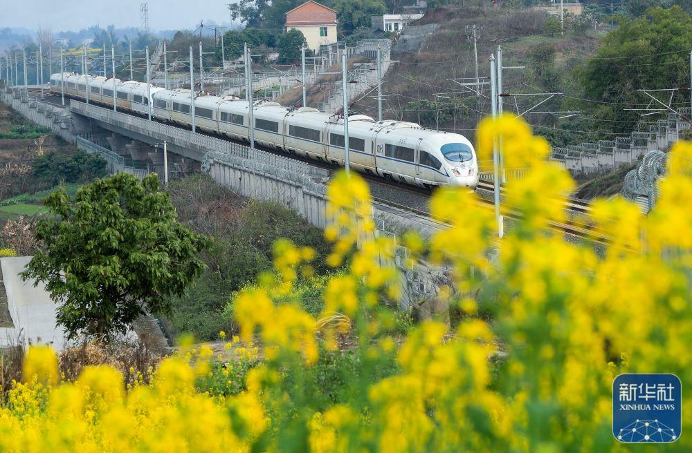 2月27日,動車組列車行駛在四川省瀘州市龍馬潭區(qū)境內(nèi)。劉學(xué)懿 攝