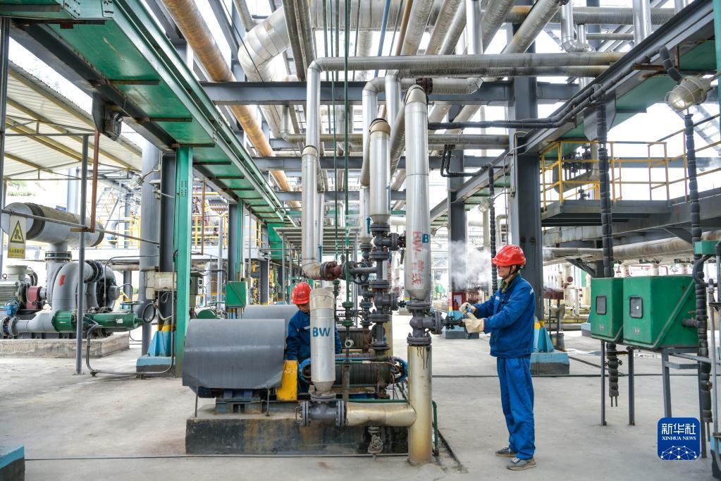 工人在貴州省天柱工業(yè)園區(qū)一家化工企業(yè)檢查冷卻設(shè)備(2月28日攝)。記者 楊文斌 攝