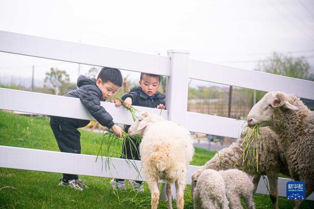3月29日,小游客在諸暨市楓橋鎮(zhèn)杜黃新村的農(nóng)耕體驗(yàn)研學(xué)基地喂羊。記者 江漢 攝