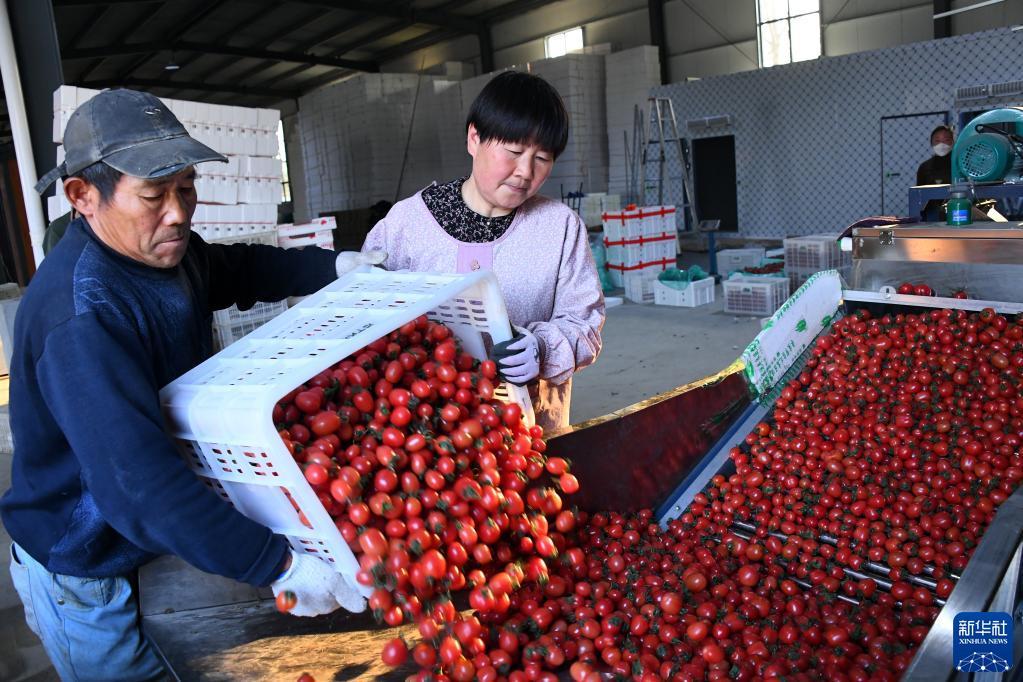 4月1日,菜農(nóng)在棗莊市臺兒莊區(qū)馬蘭屯鎮(zhèn)按揭農(nóng)業(yè)基地分選包裝西紅柿。記者 范長國 攝