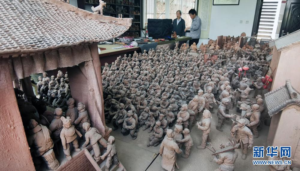今年72歲的苗春生,從事泥塑50多年,他塑造的一萬多個泥塑作品,大多取材于20世紀五十年代至八十年代初期的關中民風民俗、勞動生產(chǎn)場景,有夏收、看大戲、趕集市、鬧社火等,場景最多的人物多達千人。他的成就,讓他成為陜西省工藝美術大師、陜西省非物質(zhì)文化遺產(chǎn)傳承人。