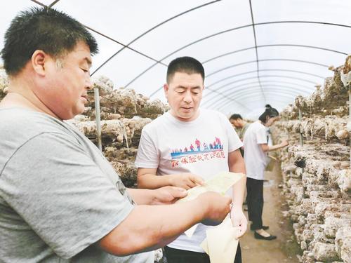 中國太保產(chǎn)險(xiǎn)河北分公司工作人員走訪查看食用菌種植情況。李辰 攝