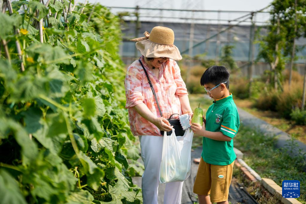 7月3日,家長帶著孩子在河北省唐山市路北區(qū)一處家庭農(nóng)場內(nèi)采摘。記者 牟宇 攝