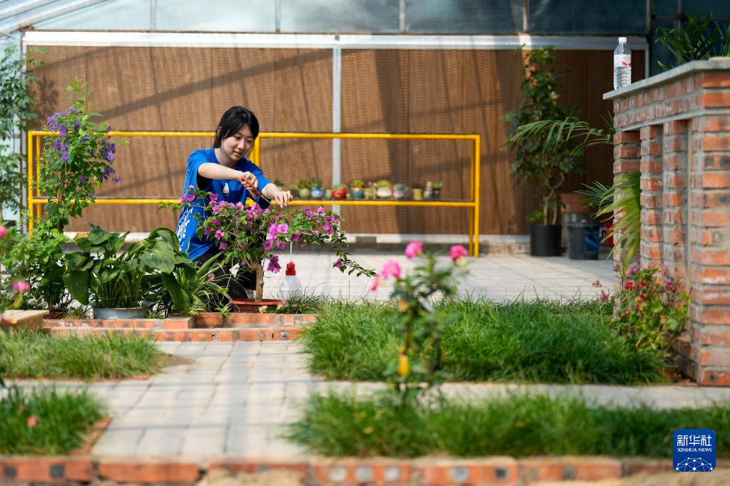 7月3日,河北省唐山市路北區(qū)一處家庭農(nóng)場的工作人員在打理種植的花卉。記者 牟宇 攝