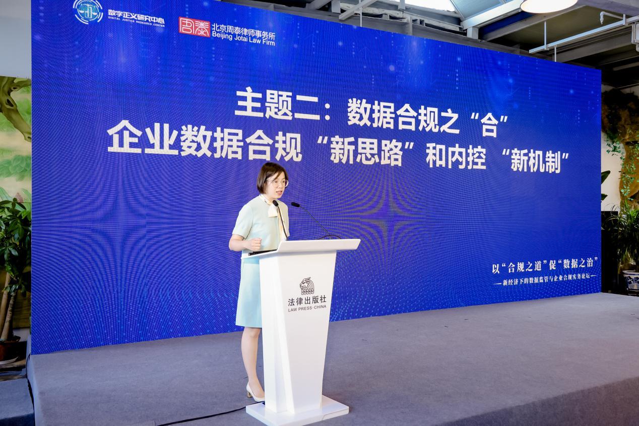 目前,數(shù)字化建設(shè)已成為我國的重要戰(zhàn)略,而發(fā)展數(shù)字經(jīng)濟(jì)離不開數(shù)據(jù)的合規(guī)利用,數(shù)據(jù)合規(guī)是企業(yè)合規(guī)的重要內(nèi)容。為積極推動(dòng)學(xué)界、律師與企業(yè)在數(shù)據(jù)合規(guī)領(lǐng)域的交流合作,7月22日,由北京航空航天大學(xué)法學(xué)院數(shù)字正義研究中心與北京周泰律師事務(wù)所聯(lián)合舉辦的“以‘合規(guī)之道’促‘?dāng)?shù)據(jù)之治’——新經(jīng)濟(jì)下的數(shù)據(jù)監(jiān)管與企業(yè)合規(guī)實(shí)務(wù)論壇”在法律出版社舉行。本次論壇邀請(qǐng)到了業(yè)界知名學(xué)者、資深律師、合規(guī)領(lǐng)域?qū)<乙约爸髽I(yè)代表等多領(lǐng)域參會(huì)嘉賓,共同探討如何提升數(shù)據(jù)合規(guī)治理能力,賦能數(shù)據(jù)要素發(fā)展,推動(dòng)數(shù)字治理體系的建設(shè)與完善。