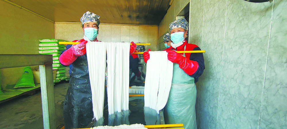 “我家里五口人,只有18畝(即1.2公頃)旱地,僅夠溫飽。一開始我們夫妻倆就在縣城收廢品,想著攢點小本錢做生意。2009年開始收洋芋,并一個村一個村地貼廣告??墒呛髞戆l(fā)現(xiàn),收回來的洋芋短時間內(nèi)根本賣不出去,那怎么辦呢?我們就想辦法,把洋芋加工成了淀粉和粉條,方便儲存。再后來,面對沒有銷路的情況,我和丈夫就推著架子車沿街叫賣。那個時候非常辛苦,晚上要加工粉條,白天要沿街叫賣,每天24小時幾乎沒有休息的時間。”說起過去的坎坷經(jīng)歷,任成香的眼里不禁泛起了淚光。