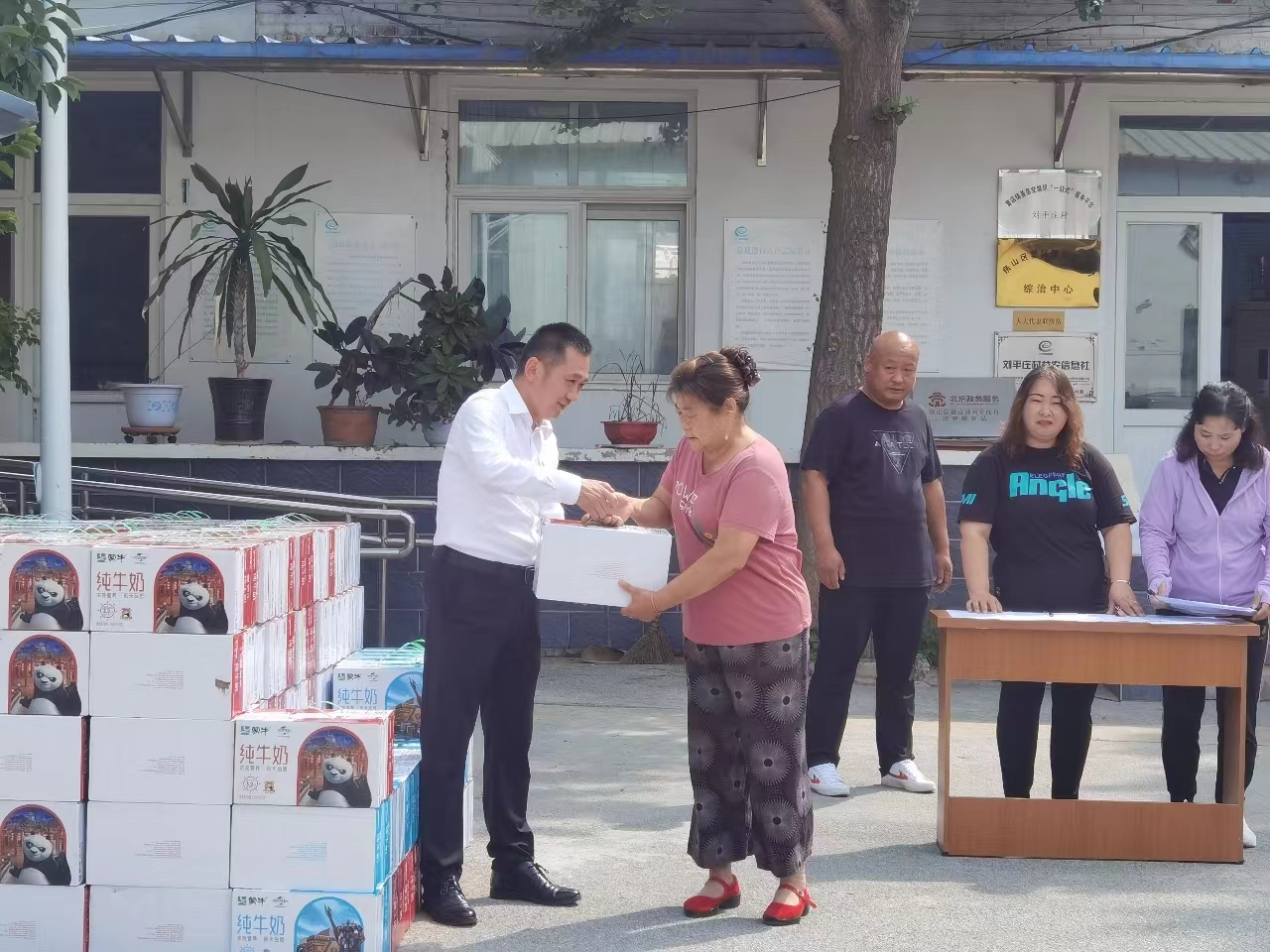 在前不久北京遭遇的特大暴雨災(zāi)害中,房山區(qū)共有11個(gè)鄉(xiāng)鎮(zhèn)遭遇斷水、斷電、斷路、斷網(wǎng)的情況。300多個(gè)村莊、社區(qū)受災(zāi),造成了較大的經(jīng)濟(jì)損失,嚴(yán)重影響了民眾的生產(chǎn)生活。劉平莊村是房山區(qū)竇店鎮(zhèn)南端海拔最低的村莊,地處低洼地帶,遭受了雨水侵襲和洪水倒灌雙重災(zāi)害,村民房屋被浸泡,農(nóng)田被淹導(dǎo)致絕收,減產(chǎn)嚴(yán)重。此次安理黨委利用黨建公益專項(xiàng)費(fèi)用“安理小基金”為村里60歲以上老人捐贈了300箱蒙牛純牛奶,以實(shí)際行動踐行社會責(zé)任。