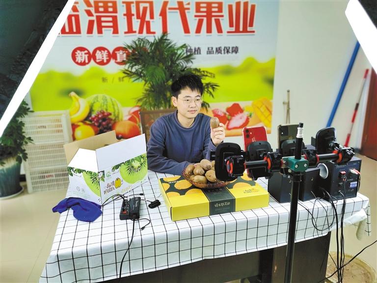 “以前是一桿多蔓,現(xiàn)在改為一桿兩蔓,這樣發(fā)枝均勻,能更好地透光、透風(fēng),種出來的獼猴桃口感好、甜度高、個(gè)頭勻稱?!惫r(nóng)董雙武在董楊村獼猴桃高質(zhì)高效示范園中向網(wǎng)友直播科普。像董雙武、李皎這樣精技術(shù)、懂直播銷售的“土專家”不在少數(shù),他們大部分都“畢業(yè)”于獼猴桃試驗(yàn)站,學(xué)到了新技術(shù)、新方法,然后再給農(nóng)戶傾囊相授,使其種植效益顯著提升。