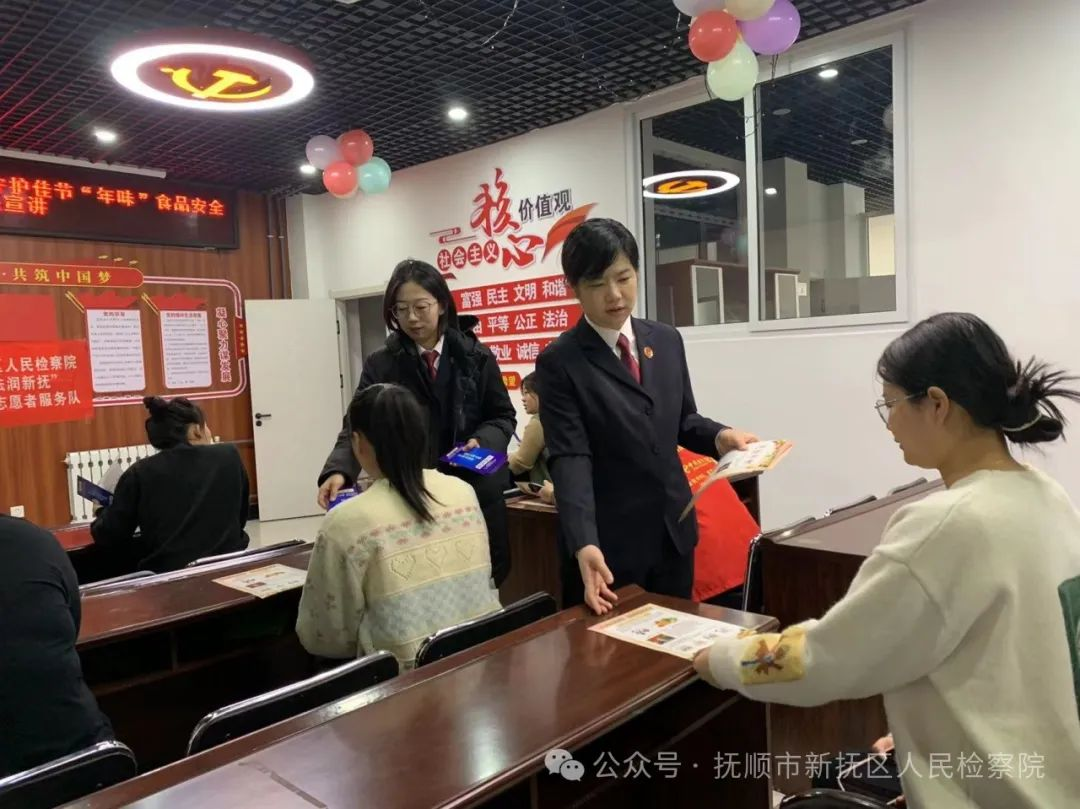 為護(hù)航民生安全,守護(hù)祥和春節(jié),在新春佳節(jié)來(lái)臨之際,近日,遼寧省撫順市新?lián)釁^(qū)人民檢察院“法潤(rùn)新?lián)帷鼻嗄曛驹刚叻?wù)隊(duì)成員分別到福民路社區(qū)、 西公園社區(qū)開展食品安全普法宣傳活動(dòng),助力人民群眾“放心囤年貨”。