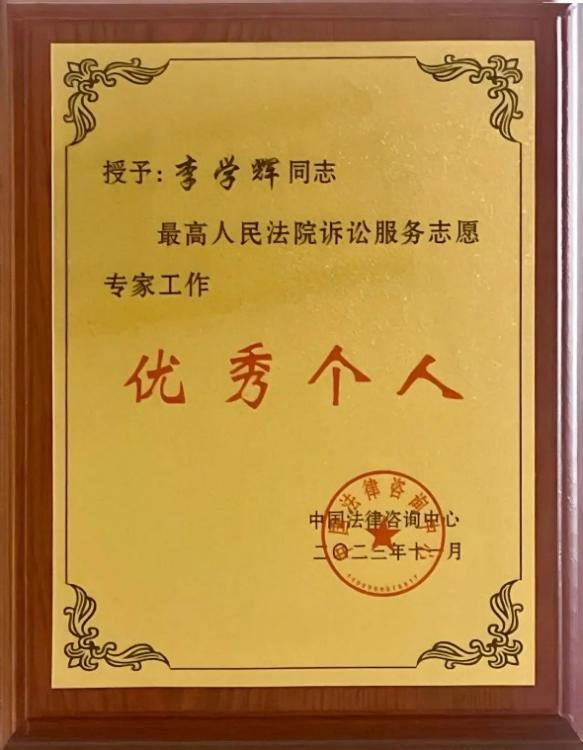 李學(xué)輝律師獲評“最高人民法院訴訟服務(wù)志愿專家工作優(yōu)秀個人”