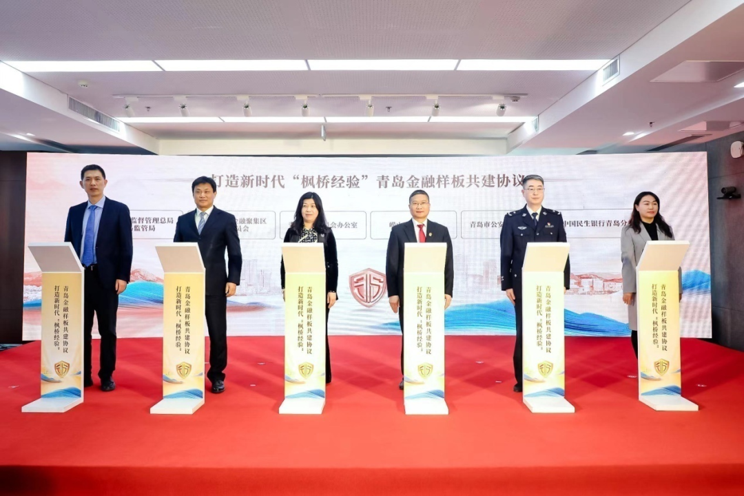 國(guó)家金融監(jiān)督管理總局青島監(jiān)管局、青島金家?guī)X金融聚集區(qū)管理委員會(huì)、青島仲裁委員會(huì)辦公室、嶗山區(qū)人民法院、嶗山公安分局、中國(guó)民生銀行股份有限公司青島分行共同簽訂《打造新時(shí)代“楓橋經(jīng)驗(yàn)”青島樣板聯(lián)建共建協(xié)議》,國(guó)家金融監(jiān)督管理總局青島監(jiān)管局黨委書(shū)記、局長(zhǎng)張忠寧與嶗山區(qū)人民法院黨組書(shū)記、院長(zhǎng)張堅(jiān)共同為嶗山區(qū)人民法院“金法E站”揭牌?!敖鸱‥站”是嶗山區(qū)人民法院為打造新時(shí)代“楓橋經(jīng)驗(yàn)”青島金融樣板所進(jìn)行的積極實(shí)踐,其兼具訴源治理、訴前調(diào)解、法治宣傳、司法確認(rèn)等多項(xiàng)功能,是一體化、全功能的金融糾紛多元化解平臺(tái)。