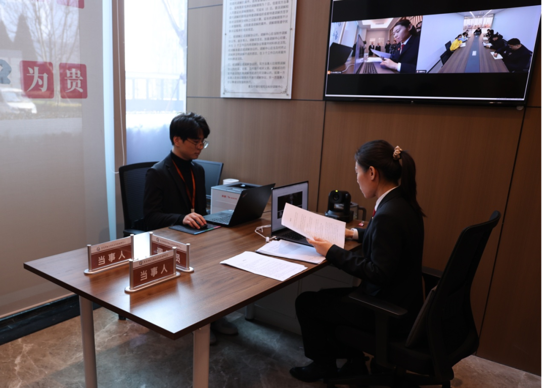 揭牌儀式后,共建單位參觀考察了“金法E站”運(yùn)行情況,并共同見(jiàn)證了一起金融糾紛的高效化解。調(diào)解人員通過(guò)“金法E站”調(diào)解平臺(tái)進(jìn)行線(xiàn)上調(diào)解,法官現(xiàn)場(chǎng)出具并送達(dá)司法確認(rèn)書(shū),展現(xiàn)了高效、便捷、智能的金融糾紛化解新模式。