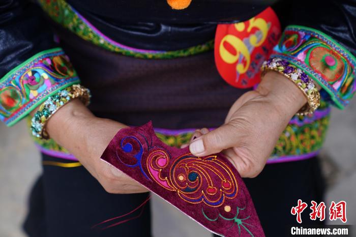 “壯族刺繡歷史悠久,可以說(shuō)每位壯族婦女都是一名巧手繡娘。”前來(lái)參賽的者兔鄉(xiāng)斗月村繡娘王順蘭介紹,壯族婦女會(huì)將自己喜愛(ài)的圖案繡在日常穿戴的服飾上,每逢節(jié)慶、聚會(huì)等都會(huì)盛裝出席。