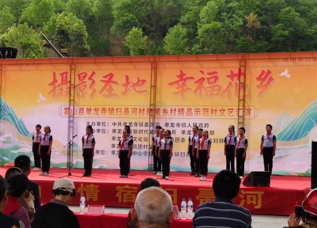 “歡聲笑語響山巔,相約云海里紅杜鵑,屋脊山上看家鄉(xiāng),杜鵑花開滿山崖……”下午三時許,當(dāng)?shù)?8名小學(xué)生組成的“小山雀合唱團(tuán)”演唱的一曲禮贊家鄉(xiāng)、飽含鄉(xiāng)情的《相約云海紅杜鵑》在攝影家村廣場回蕩,激揚(yáng)的旋律,嘹亮的歌聲,贏得現(xiàn)場觀眾雷鳴般掌聲。這里,正在舉辦一場春意盎然的文化盛宴——單龍寺鎮(zhèn)掃帚河村和美鄉(xiāng)村精品示范村文藝匯演,這也是該縣今年舉辦的第四場精品示范村群眾性文藝演出。