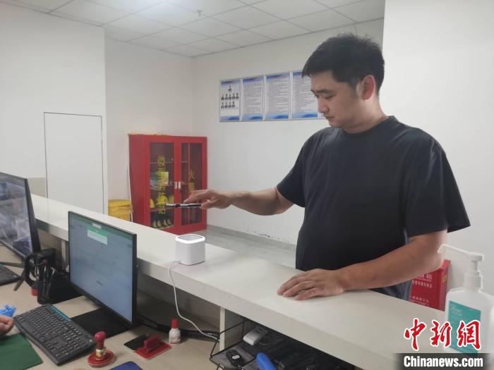 畜牧企業(yè)工作人員在上海葉新動物防疫監(jiān)督檢查站接受電子證明核驗(浙江省農(nóng)業(yè)農(nóng)村廳供圖)