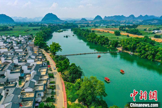 初夏時節(jié),走進(jìn)卜花村,平坦的村道被長勢正盛的甘蔗林包裹,青瓦白墻的農(nóng)家小院錯落有致。游客在此,可乘花船而行,或騎行于綠道,感受遠(yuǎn)山如黛,近水潺潺;亦可參與戶外稻田研學(xué),探秘壯族古法紅糖制作技藝,體驗(yàn)水上漂流等互動項(xiàng)目;還可坐在鮮花燦爛的小院里,靜享石板路、竹籬笆間透露出的鄉(xiāng)野韻味。