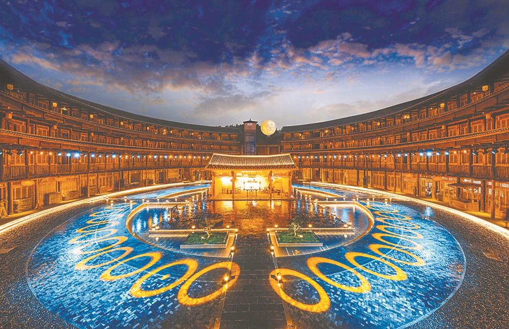 引進(jìn)“天刀”項(xiàng)目是一次突出土樓古色古香特質(zhì)的既謹(jǐn)慎又大膽的嘗試。項(xiàng)目依照“修舊如舊,尊重原貌”的原則,對(duì)環(huán)興樓進(jìn)行提升。特地保留了環(huán)興樓火燒的缺口,將其建設(shè)成土樓觀景臺(tái)和月亮景觀,保持建筑完整性,留住歷史厚重感。永定區(qū)文旅局副局長樊俊嬌說:“土樓活態(tài)利用需要大膽創(chuàng)新,但一定要保留原汁原味的客家文化?!?/p>