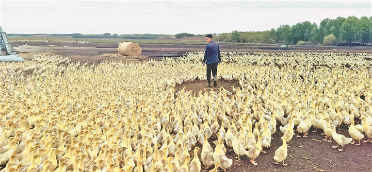 看著企業(yè)紅紅火火,村民也來勁兒了。今年,有8戶村民入股雙甘鵝業(yè),肉鵝養(yǎng)殖戶增加到25戶。在村民呂海濤的養(yǎng)殖場里,7000多只出生十幾天的小鵝奶黃色、毛茸茸,非??蓯?。他介紹,今年飼養(yǎng)量不少于1.5萬只。