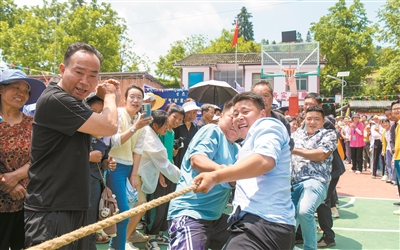 游客在大水鄉(xiāng)后壩村參加鄉(xiāng)村避暑季全民運(yùn)動(dòng)會(huì) 李光輝 攝