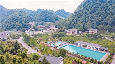 5月25日,走進(jìn)百里杜鵑戛木管理區(qū)大堰村,國家3A級景區(qū)米底河繞村而過,青山相擁、碧水環(huán)繞、云朵如絮,海恩底度假村內(nèi),錯(cuò)落有致的民居散落于群山間。文化廣場旁的泳池里,不少避暑游客在這里游泳、燒烤、唱歌,好不愜意。