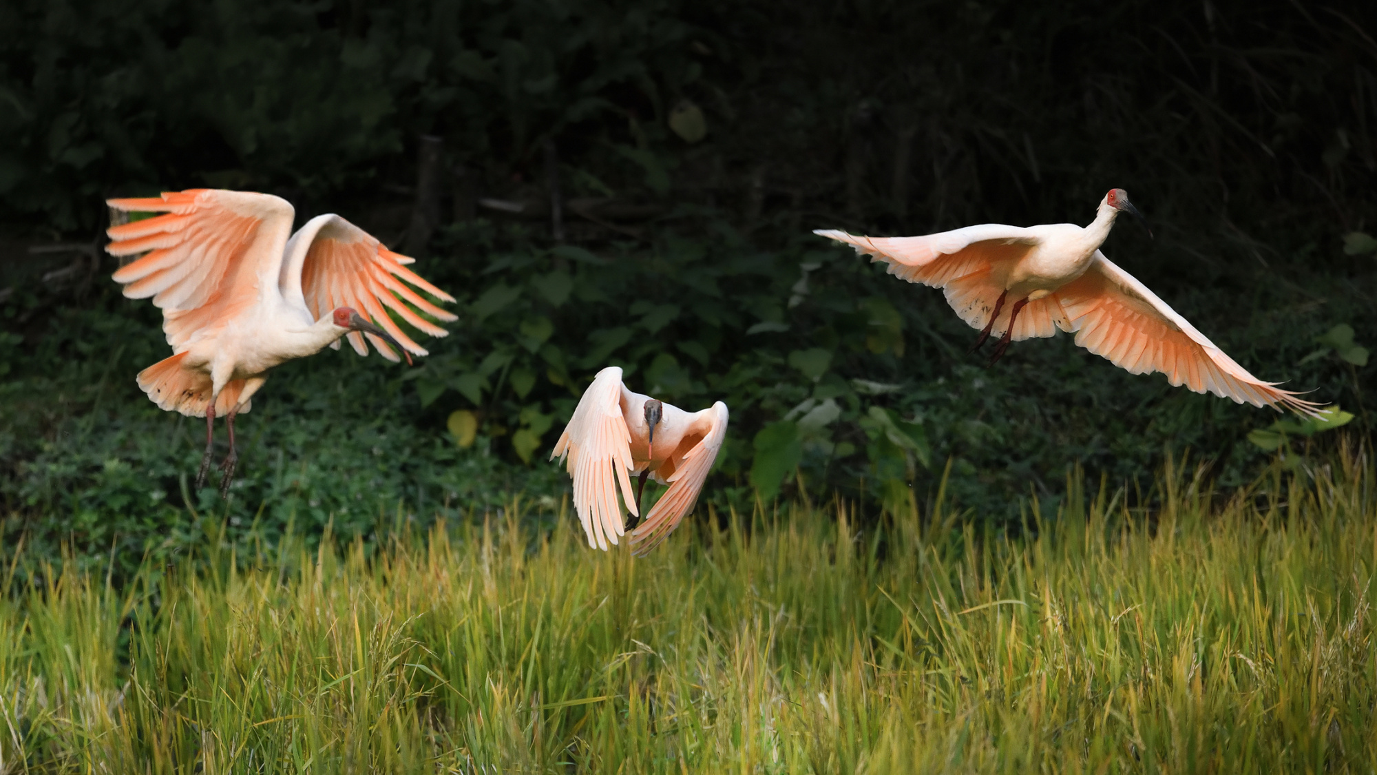 漠漠水田里,國寶朱鹮展翅飛翔 董長松 攝