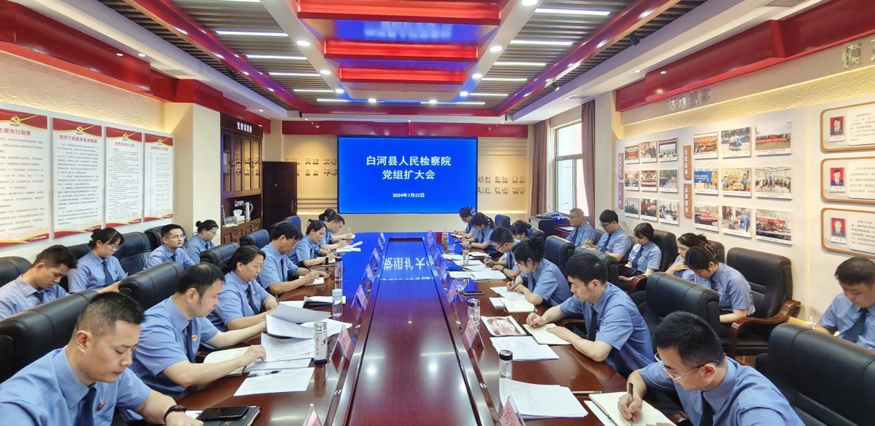 7月22日,陜西省安康市白河縣人民檢察院召開黨組擴大會,傳達學(xué)習(xí)黨的二十屆三中全會精神,研究部署當(dāng)前重點工作,會議由該院黨組書記、檢察長馬繼軍主持,全體干警及書記員參加。