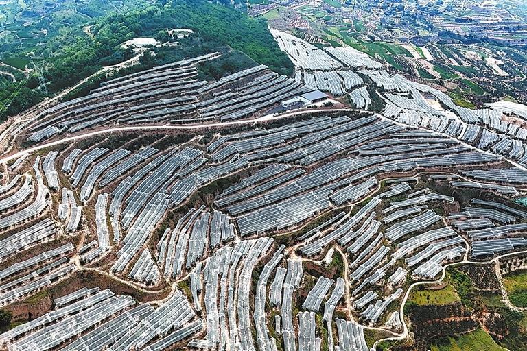 甘谷縣謝家灣鄉(xiāng)馬家窯村300畝果園防雹網(wǎng)設(shè)施(甘谷縣委宣傳部供圖)