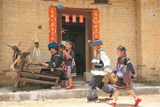 走進(jìn)連山壯族瑤族自治縣福堂鎮(zhèn)太平村委會(huì)金龜村,近年打造的鄉(xiāng)村文化空間——壯瑤傳統(tǒng)風(fēng)貌園一下子就驚艷了游客。在風(fēng)貌園的錦繡非遺館里,游客可以欣賞到上百件明清時(shí)期的珍貴壯錦藏品;在非遺工坊和研學(xué)基地里,游客可以參與研學(xué),沉浸式體驗(yàn)壯錦的編織與文創(chuàng);在染料種植科普?qǐng)@里,游客還可以與自然親密接觸,增長(zhǎng)見識(shí)……