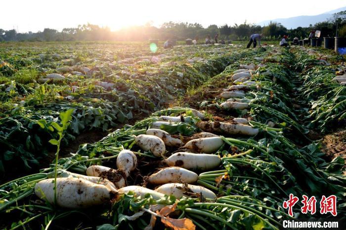 電白區(qū)沙瑯鎮(zhèn)譚儒村剛收獲的新鮮蘿卜(譚儒村委會供圖)