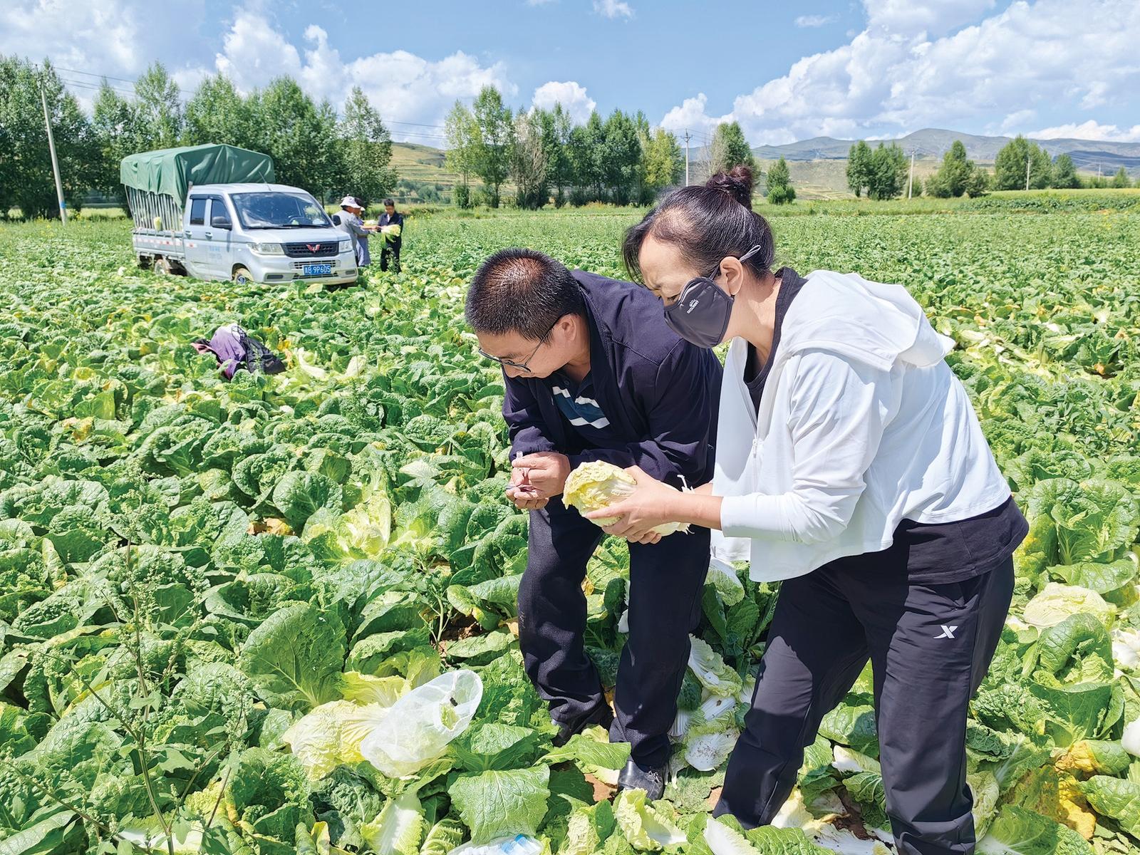 專家到田間調(diào)研菜地菜蟲害情況(西寧市科技局供圖)