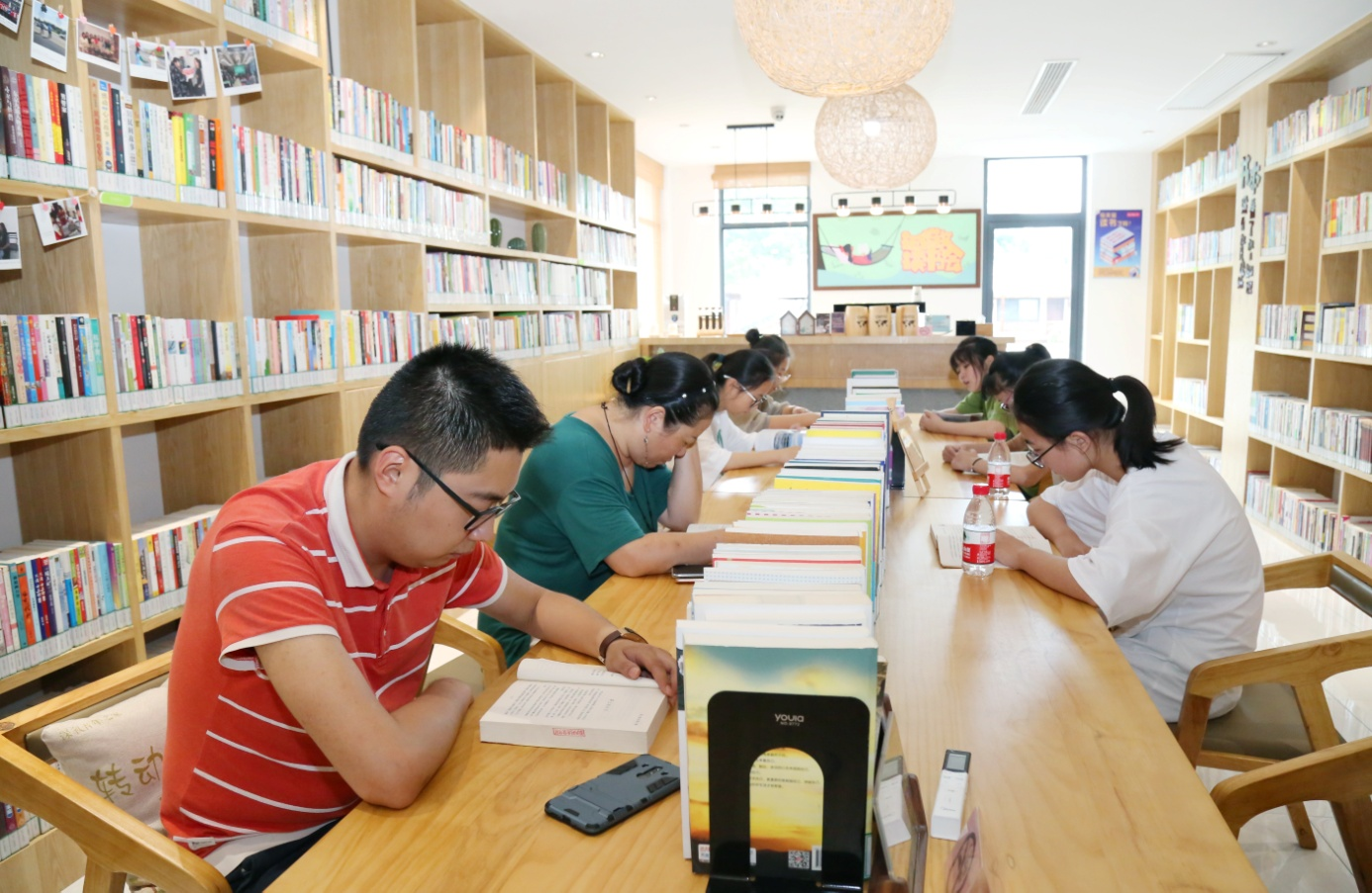 注重統(tǒng)籌各方資源,契合各條線部門要求,深入探索推動農(nóng)家書屋“+兒童之家”“+青年之家”“+婦女之家”等基層陣地互聯(lián)互通,分設(shè)思想加油站專題書柜、鄉(xiāng)村振興書吧、婦女微家、旅游多功能廳、閱讀交流區(qū)、助殘義賣站、禪德文化展示區(qū)等多個特色功能區(qū),使之成為相關(guān)部門在農(nóng)村開展工作的重要載體,從而促進(jìn)設(shè)施、人員、產(chǎn)品、場地的統(tǒng)籌使用,有效提升農(nóng)家書屋利用率,提升農(nóng)村文化服務(wù)水平。此外,還引進(jìn)茶咖,設(shè)置各類時尚卡座,吸引村民游客休閑閱讀,被宜興市評為最美閱讀空間。