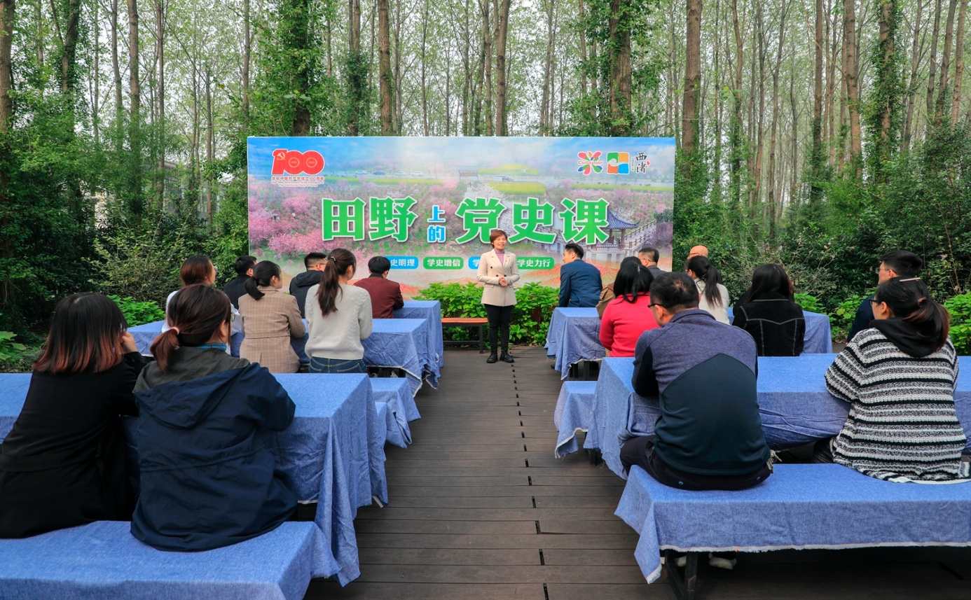 通過“移步換景”等方式,把“紅色知識”帶入“生動體驗”的實境課堂。利用“一堂”即道德講堂、“一館”即于伶紅色紀(jì)念館、“一田”即田野上的思政課、“一廊”即紅色文化長廊,不斷延展閱讀活動的外延內(nèi)涵。在道德講堂,持續(xù)開展主題教育、紅色觀影、黨建聯(lián)盟等黨建活動。把于伶紀(jì)念館作為面向全國的愛國主義教育基地,每年承接幾十場宜興中、小學(xué)、未成年人的社會實踐活動,數(shù)百場全國各黨政機(jī)關(guān)、企事業(yè)單位黨建參觀。在田野上的思政課和紅色文化長廊,全國人大代表、白塔村村書記現(xiàn)場講述白塔村從“窮山溝”變?yōu)椤盎▓@村”的奮斗故事。